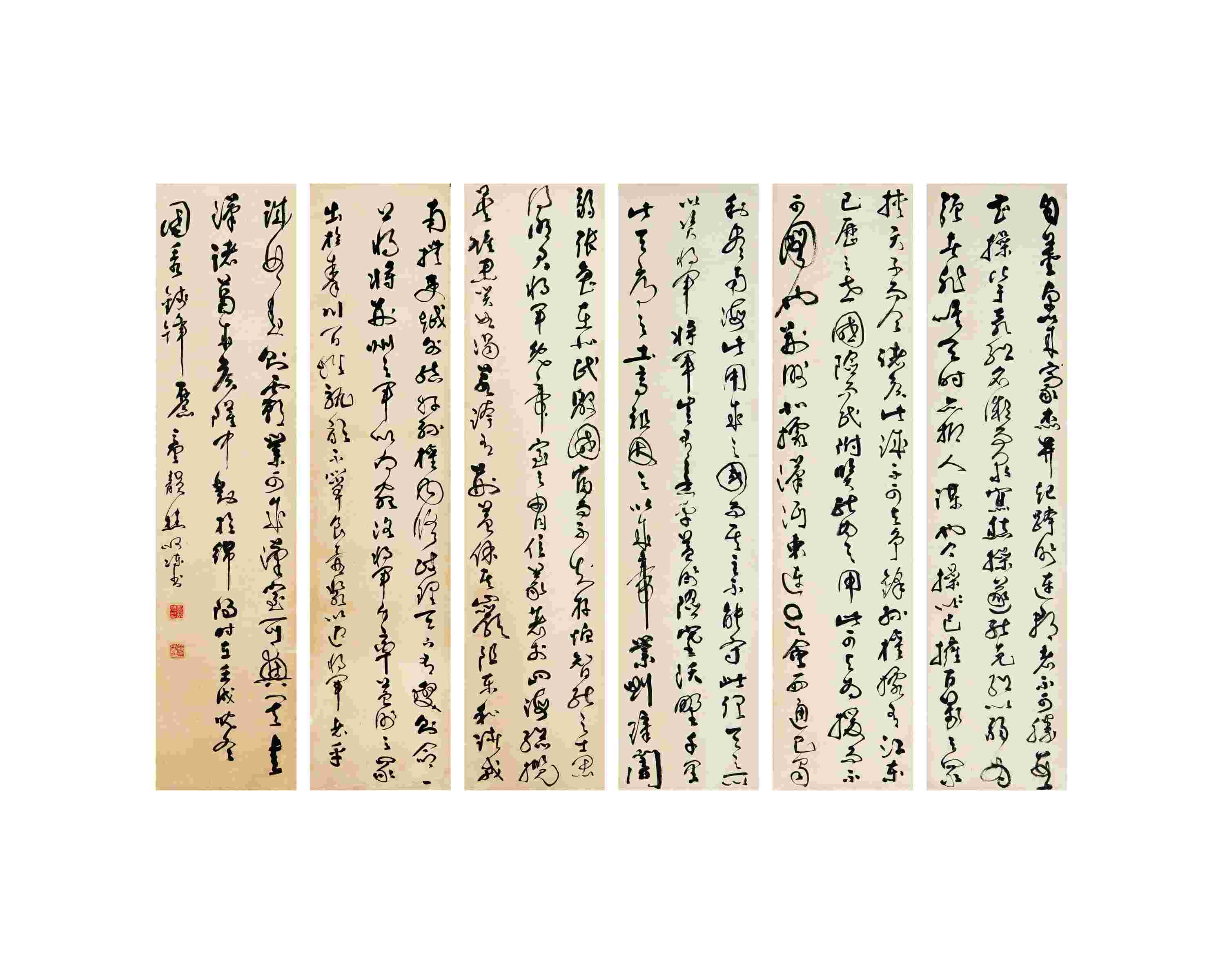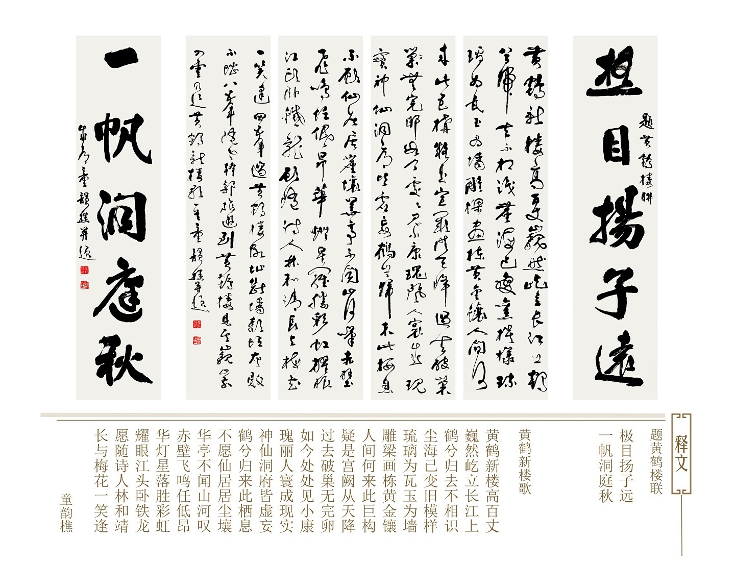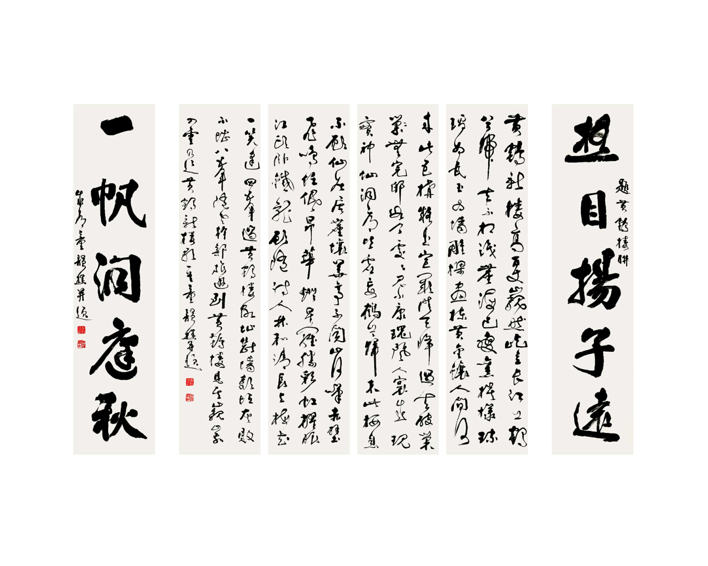 草书六条屏配对联_童韵樵 黄鹤新楼歌